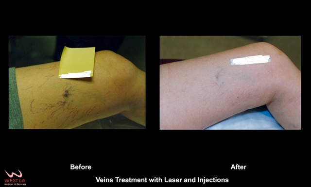 The majority of the treated veins will disappear within two to three treatments. Treatments are spaced three to six weeks apart, depending on the area under treatment. Additional treatments may be necessary to achieve the maximum effects and to treatment and new veins.